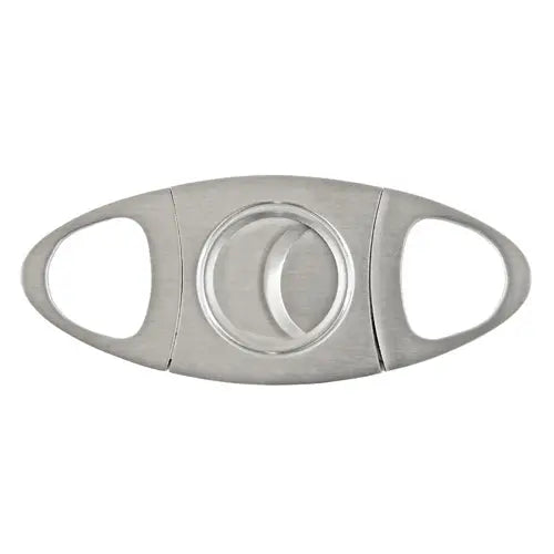 A specialized tool for a specialty pursuit, the stainless steel Escudo Cigar Cutter clips each cigar cap with a razor-sharp double blade, leaving an impeccably precise edge to ensure an even burn. Stainless steel Double-bladed for clean cut ensures even burn for up to 54-gauge cigars.