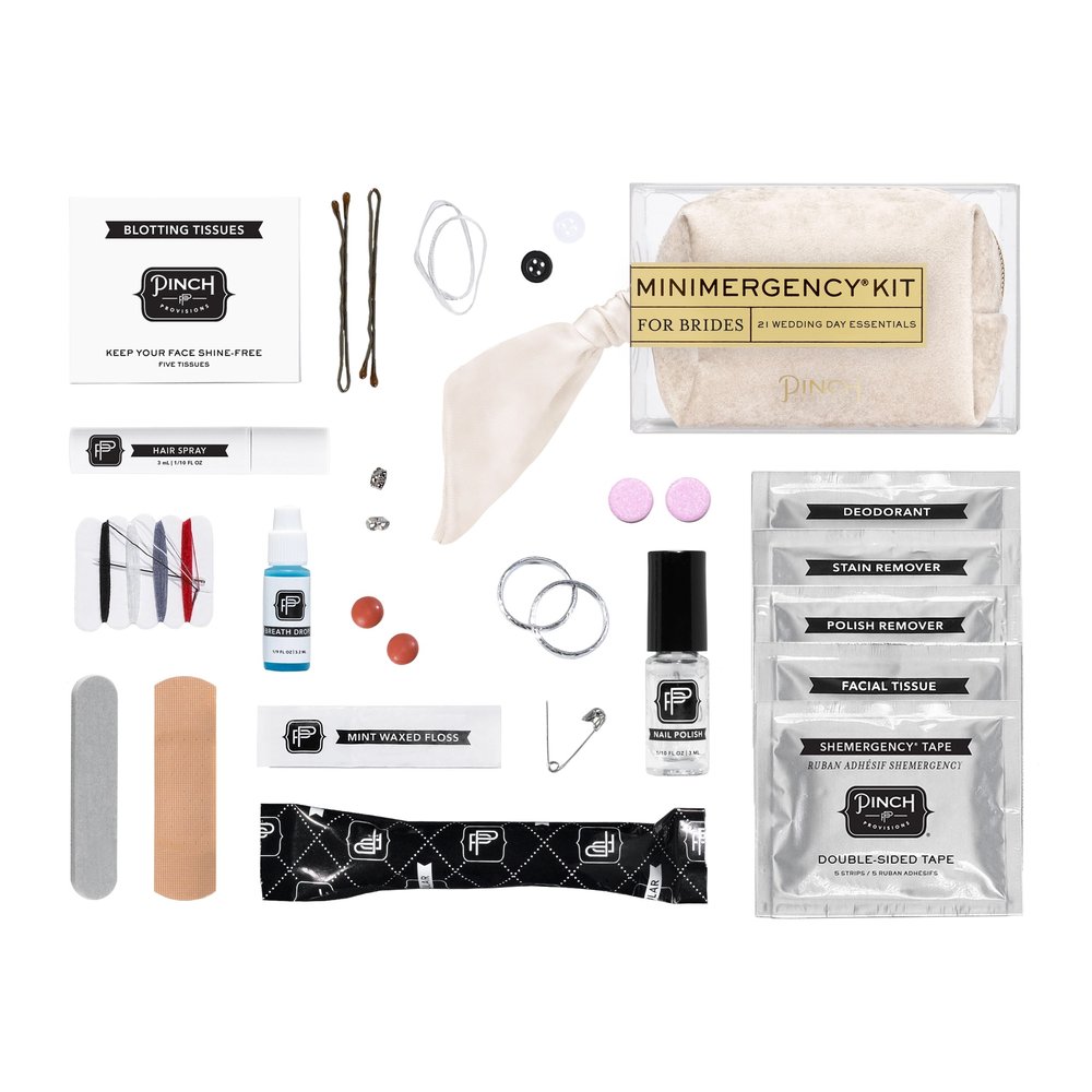 Velvet Minimergency Kits for Brides with matching scarf pulls contains 21 essentials:
