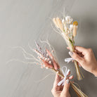 Brighten up your home with these small dried flower bunches. Natural colors combined with colorful accents.