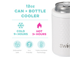 Thanks to triple insulation technology, this combination cooler keeps your can or glass bottle beverages cold for up to 12 hours. Simply twist off the top ring to insert your can/bottle, then twist the ring back on to secure and you're ready to enjoy!