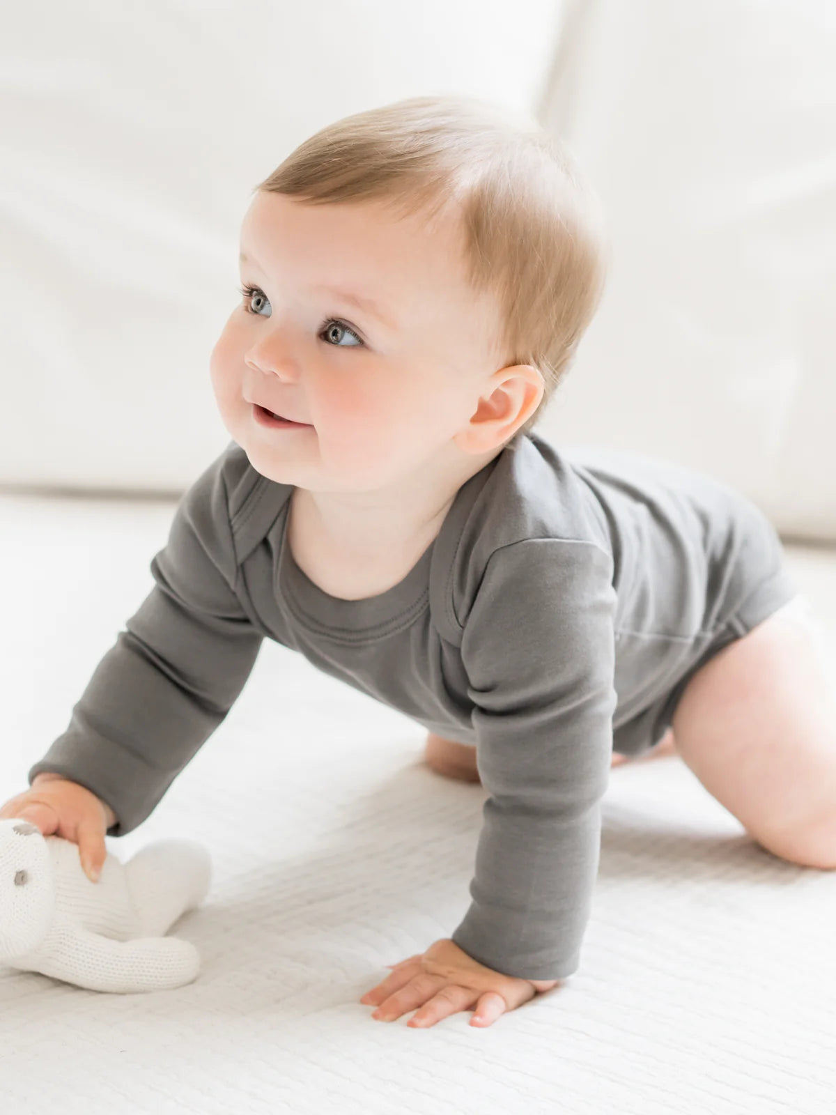 Buttery soft and versatile, our organic long sleeve bodysuit is an essential piece for any growing baby.