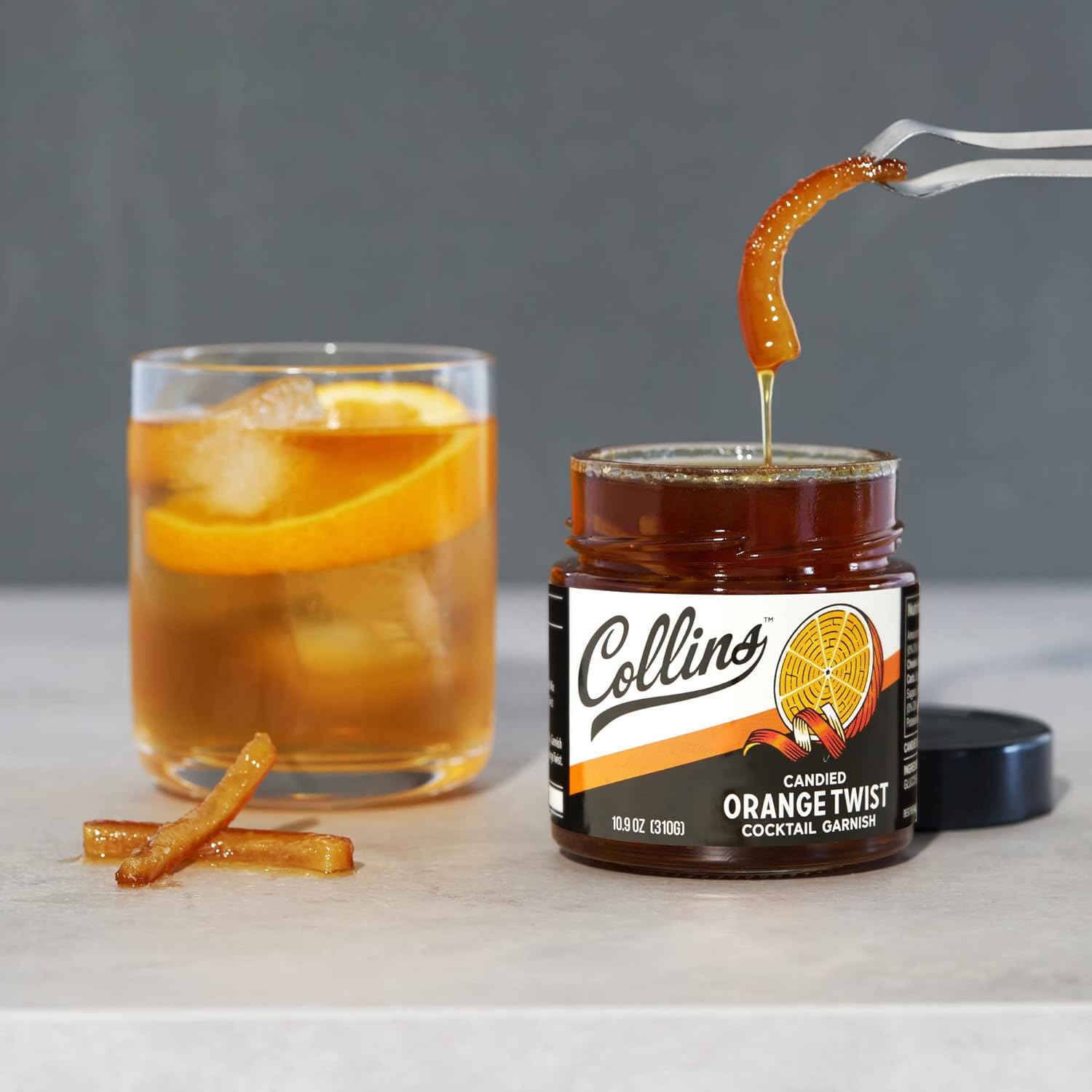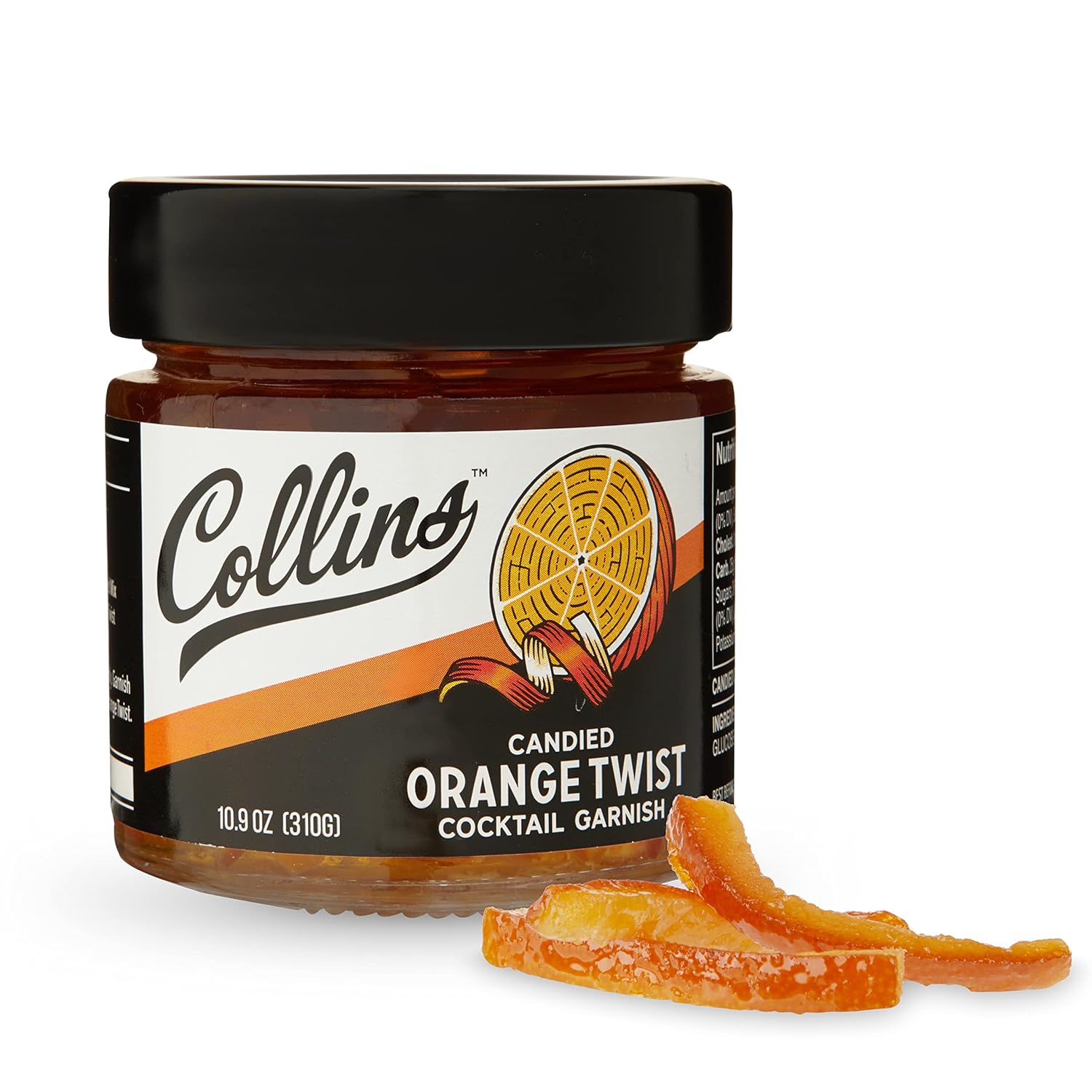Collins Orange Twist in Syrup are the perfect ready-to-use garnish. The bold bite of orange peel is balanced out with candied sweetness that holds up to the stiffest cocktails. These orange twists make the ideal complement to a wide range of drinks including Cosmopolitans and the iconic Old Fashioned.