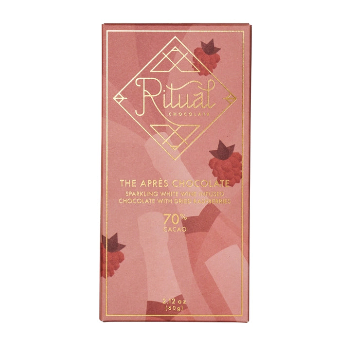 This bar is the perfect celebratory treat—the tasting notes of sparkling white wine infused cacao complement the sweet tartness of the raspberries. Whether you’re celebrating the end of a day on the ski hill, toasting a birthday, or cheering at midnight on New Year’s Eve, this bar is sure to bring you cheer & chocolate.