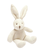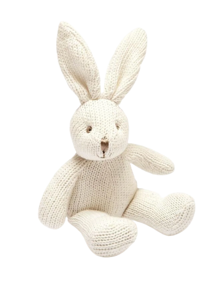 This super cute bunny is a must have for babies! This organic knit bunny rattles, making it great for both cuddling up and playing!