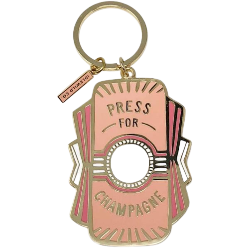 Our brass and enamel keychains make for an eye-catching accessory! Inspired by the London restaurant, Bob Bob Ricard’s “Press For Champagne” buttons at each table (which summons Champagne-weilding servers,) our painted design is reminiscent of a deco-style doorbell.